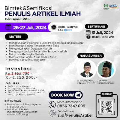 Beranda Kegiatan Bimtek dan Sertifikasi Penulis Artikel Ilmiah Bimtek dan Sertifikasi Penulis Artikel Ilmiah personHijau daun share Hijau Daun Internasional Training Center akan menyelengarakan kegiatan Bimtek dan Sertifikasi Penulis Artikel Ilmiah, berlisesni BNSPInformasi dan Pendaftaran : 08567347099Link Daftar : s.id/PenulisArtikel Facebook Twitter Whatsapp Lebih baru Lebih lama